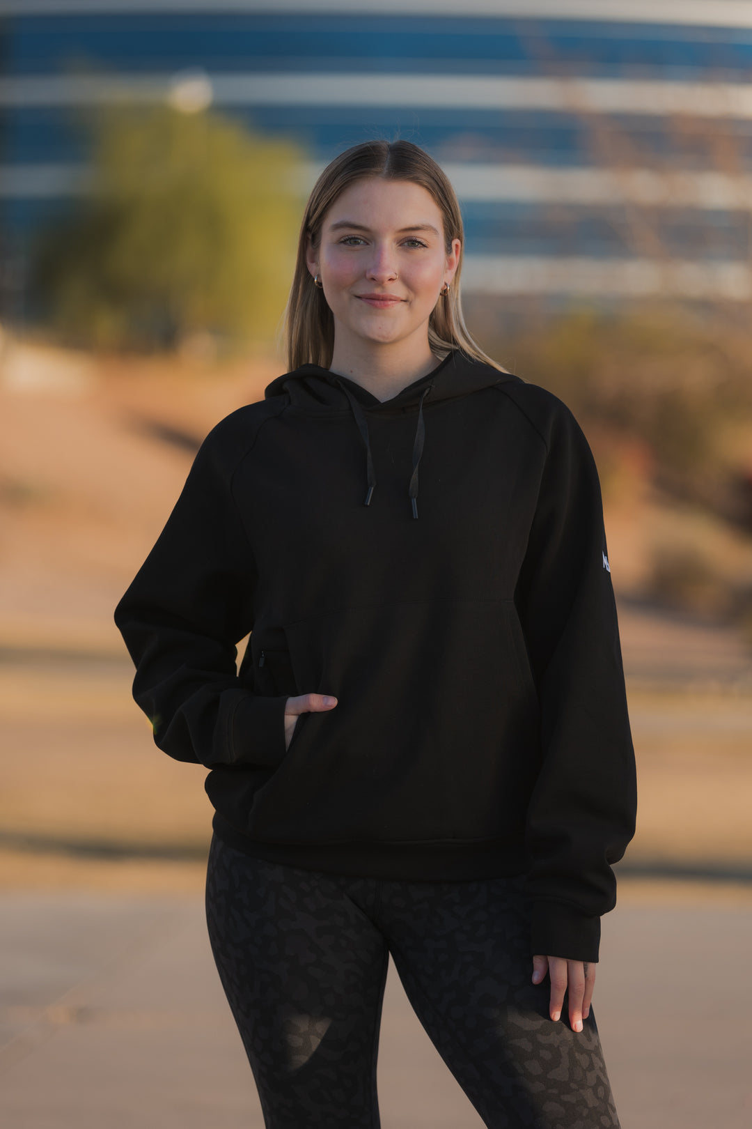 Designed to fit true to size, the Motive Hoodie is your go-to 365 everyday hoodie. Whether you're heading to the gym, running errands, engaging in your favorite exercise, or simply lounging at home, this hoodie has you covered. Its sleek midnight black design ensures versatility while maintaining an effortlessly stylish look.